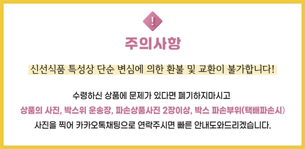 · 상품 불량 사유와 사진을 남겨 주시면 빠른 처리가 가능합니다.